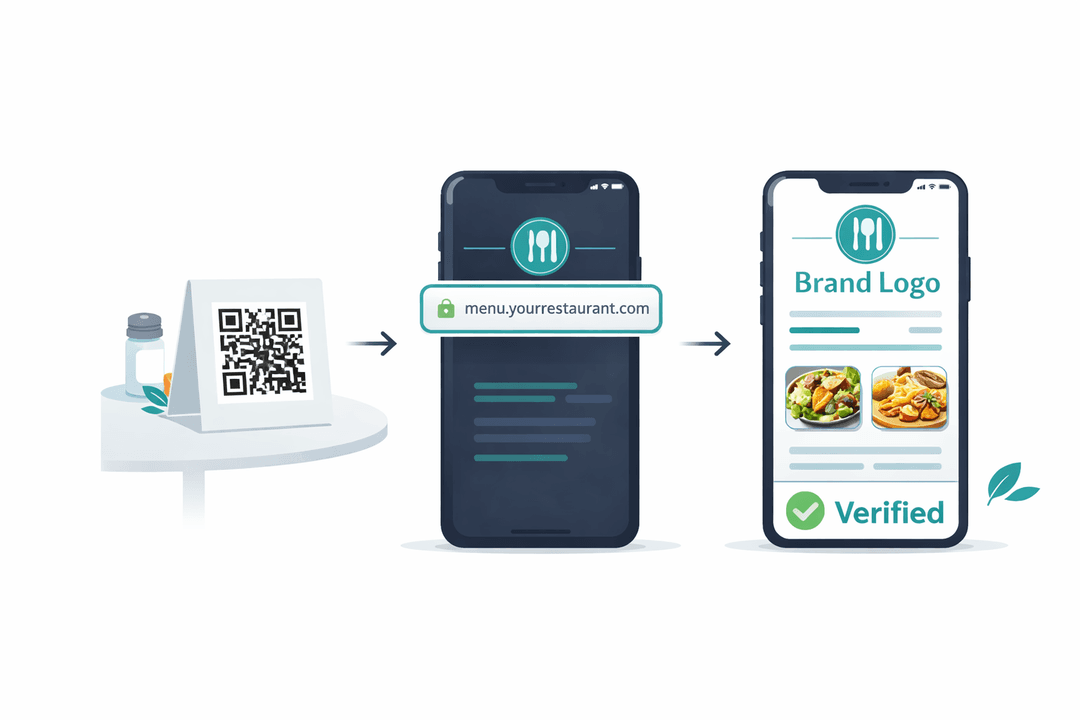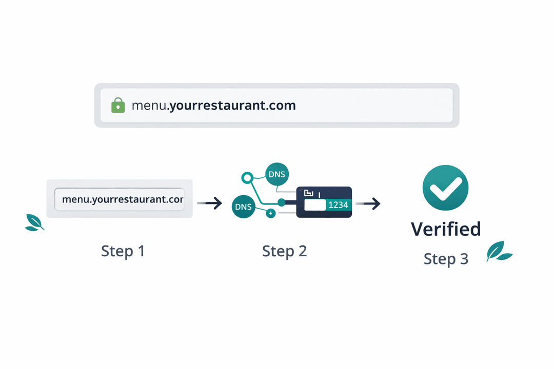 Connect your own domain like menu.yourrestaurant.com. Customers see your brand in the address bar, not ours. It looks professional and builds trust.