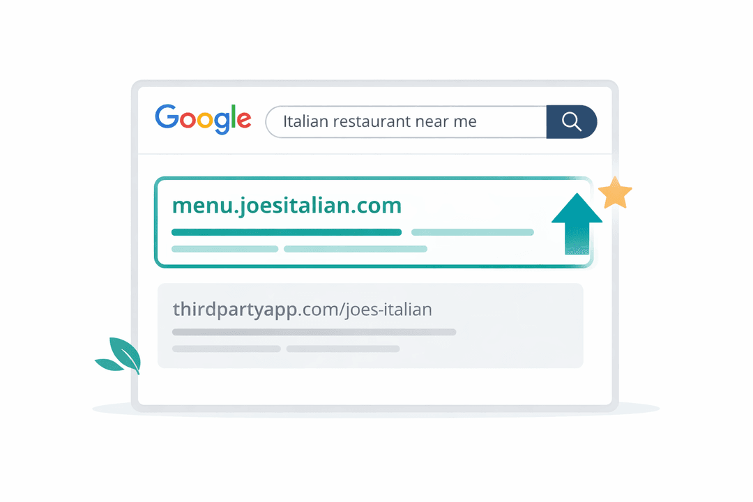 When your menu lives on your own domain, search engines associate it with your restaurant. Customers searching for your restaurant name find your menu on your site — not buried on a third-party platform.