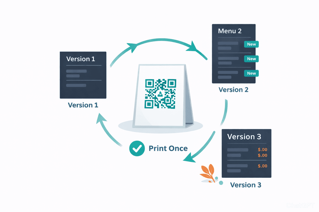 Your QR codes are dynamic. Change your menu, update prices, add new items — the same printed QR code always loads the latest version. You never need to reprint codes just because your menu changed.