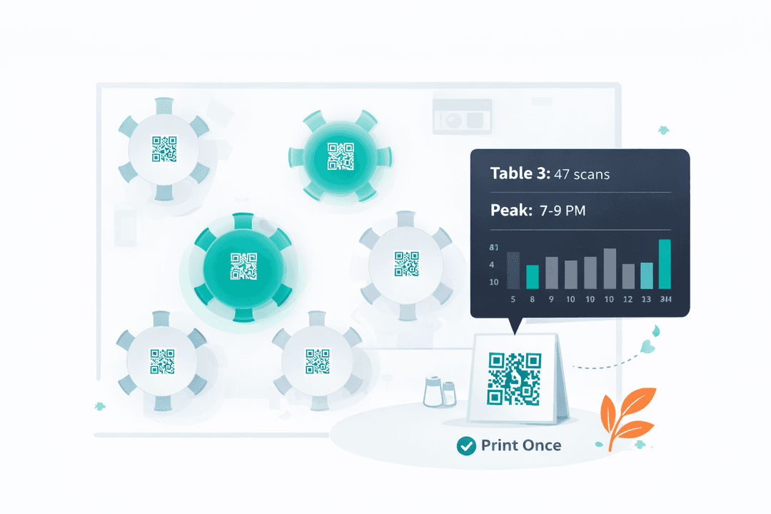 Track how many times each code is scanned, which tables generate the most orders, and when your peak scan times are. Use the data to optimize table layouts, staffing, and server assignments.